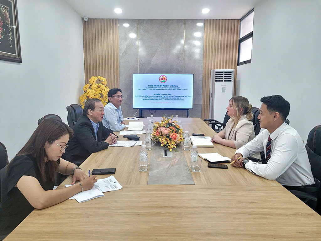 25 сентября состоялась встреча вице-консула Генерального консульства Республики Беларусь в Хошимине Полины Карповой с вице-президентом Ассоциации пищевой промышленности и продуктов питания Хошимина Фам Тхиет Хоа.